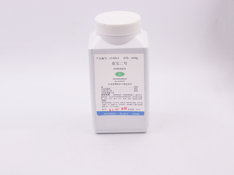 ②花寶2號。三要素含量分別為20∶20∶20, 美國進口複合肥水溶液為草綠色。花寶2號是廣泛用途的配方,可促進蘭花和洋蘭發育。因花寶2號的總成分高,使用時,稀釋1500~2000倍較為。